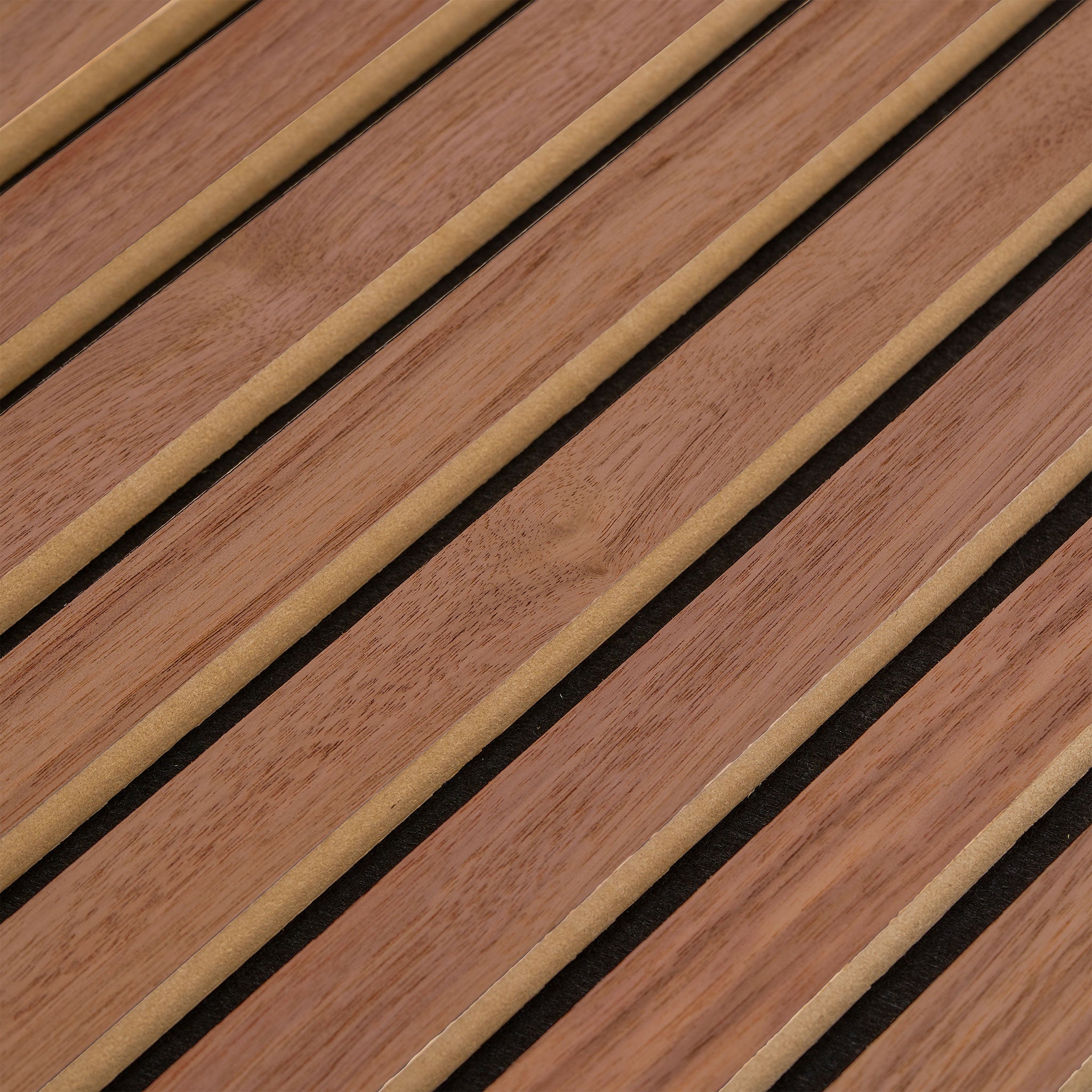 O painel ripado IKARA combina camadas de lâmina de madeira natural, MDF e feltro acústico reciclado, garantindo estética, funcionalidade e sustentabilidade em cada detalhe.